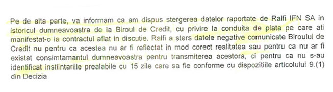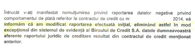 solicitarea și motivarea privind ștergerea istoricului negativ